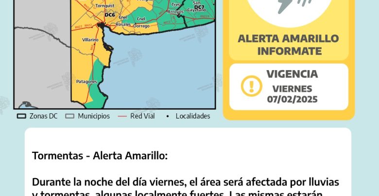 Durante la noche de este viernes 7 de febrero, hay probabilidad de lluvias y algunas tormentas aisladas sobre el sudoeste de la provincia. Alguna podría ser localmente fuerte, con ráfagas y chaparrones intensos.