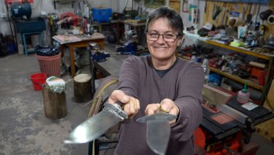 Sandra, la forjadora de cuchillos de Caseros que sobresale en