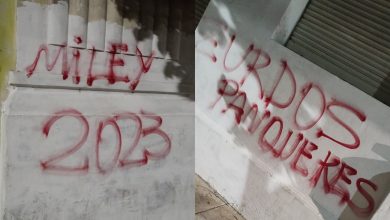 Pintadas con mensajes amenazantes fueron encontradas en la Imprenta Recuperada Chilavert, situada en el barrio de Pompeya. Tiempo Argentino/a>
