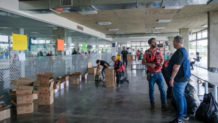 Con la presencia del ministro de Seguridad bonaerense, trabajan en el lugar efectivos de Defensa Civil, Seguridad y Logística. Asimismo se puso a disposición 35 camionetas, seis móviles logísticos, tres autobombas, dos minibuses, dos camiones de talleres, una grúa palanca y un hidroelevador.