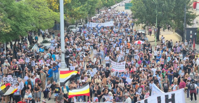 Distintas agrupaciones, gremios y organizaciones políticas, participaron esta tarde de la marcha convocada por los organismos de derechos humanos a 50 años del Golpe Cívico Militar.