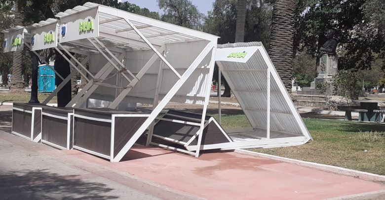 Por las fuertes ráfagas, se volaron los puestos de artesanos